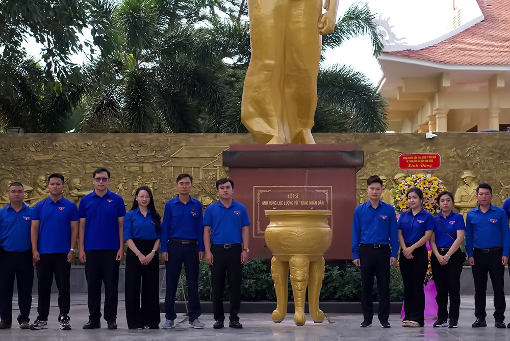 Điểm dừng chân đầu tiên trong hành trình là Đền thờ Anh hùng liệt sĩ Võ Thị Sáu tại huyện Đất Đỏ. Trong không khí trang nghiêm, các đoàn viên đã thành kính dâng hương, bày tỏ lòng tri ân sâu sắc trước sự hy sinh anh dũng của người nữ anh hùng trẻ tuổi.